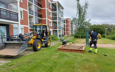 Tänään asensimme As Oy Rovaniemen Oskarintörmään iloksi perheen pienimmille uuden hiekkalaatikon hiekkoineen. Nyt on hyvä harjoitella kaivuutöitä ja tehdä niitä hyviä kakkuja!